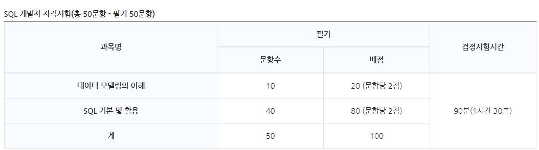SQL 개발자(SQL Developer)란 데이터베이스와 데이터 모델링에 대한 지식을 바탕으로 응용 소프트웨어를 개발하면서 데이터를 조작하고 추출하는데 있어서 정확하고 최적의 성능을 발휘하는 SQL을 작성할 수 있는 개발자 자격증입니다.